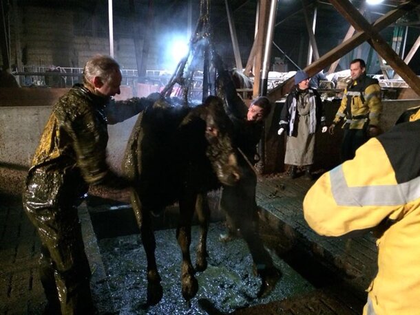 Rettung zweier Kühe aus einer Jauchegrube