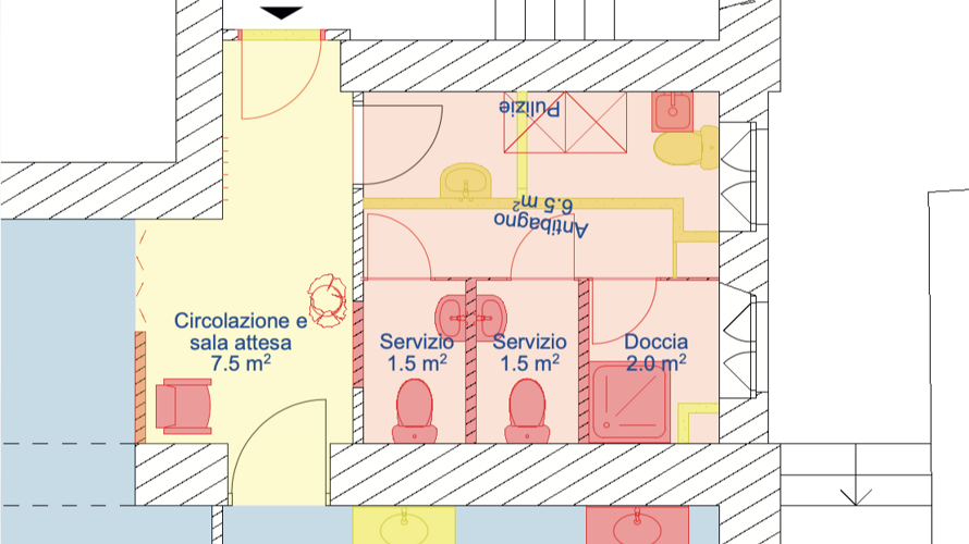 spogliatoi (maschi e femmine). Il lavoro di ristrutturazione