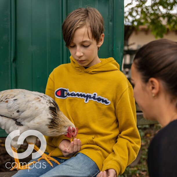 Liebe Freundinnen und Freunde Theo hat mit uns ein schönes Video erstellt. Seht es euch auf www.compas.ch/aktuell an und teilt es gerne. Dank eurer unglaublichen Unterstützung haben wir bereits 79% von unserem Ziel erreicht, um unseren neuen Hühnerstall zu bauen. Wir sind aber noch nicht am Ziel! Wir benötigen weiterhin eure Hilfe. Jeder Beitrag, jedes Teilen und Weiterverbreiten von unseren tollen News bringt uns näher an unser Ziel.