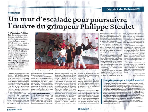 Notre journal régional, le Quotidien Jurassien, a écrit un bel article sur notre projet social et sportif.