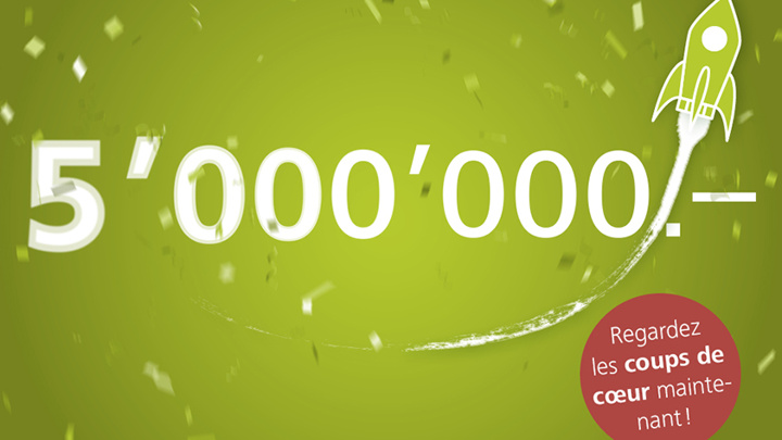 Les Suisses aiment leurs montagnes. Cet amour se manifeste aussi dans les nombreux financements participatifs fructueux en faveur des montagnes. Construction de nouveaux remonte-pentes, de nouveaux téléphériques, aide pour les paysans de montagne locaux, mise en valeur de lacs de montagne – les possibilités sont presque illimitées. C'est ainsi que les Alpes ont bénéficié au total d'un montant considérable de 5 millions de francs. Un grand merci à tous les amis de la nature!