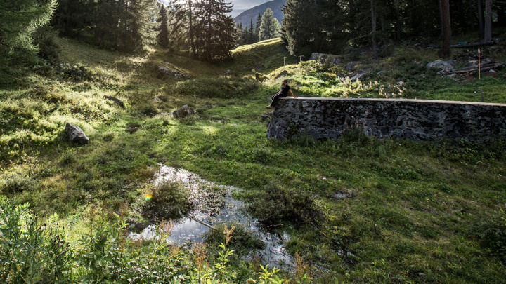 Zwischen 1930 und 1980 gab es hier schon einmal einen Badeweiher, den sogenannten Lai da Padnal. Der private See gehörte zum Hochalpinen Töchterinstitut Ftan und durfte damals nur von dessen jungen Internatsbewohnerinnen genutzt werden. Wenn sich Einheimische abkühlen wollten, mussten sie das in der Nacht tun, damit sie niemand sah, wie es im Dorf heisst. Im Laufe der Jahre wurde der Naturdamm rund um den See spröde, bis das Wasser schliesslich abfloss. Seither liegt das Gebiet brach. Heute erinnert nur noch eine Mulde, ein Erddamm und eine betonierte Mole an das Badevergnügen von damals.