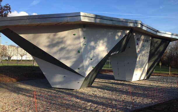 Die Anlage ist nun fertig und bereit zum Klettern. Wir haben inzwischen die ersten Klettergriffe montiert; weitere werden diesen Winter dank den Spenden der Lokalhelden folgen. Es kann aber bereits jetzt ausprobiert werden - und der Boulder hat's wirklich in sich!