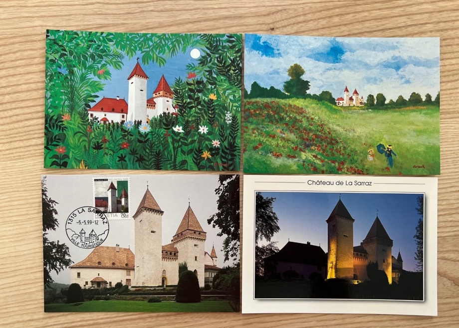 Lot de 4 cartes postales représentant le Château de La Sarraz. En cas de succès de notre financement participatif, les cartes vous seront envoyées par poste. Pour cela nous aurons besoin de votre adresse.