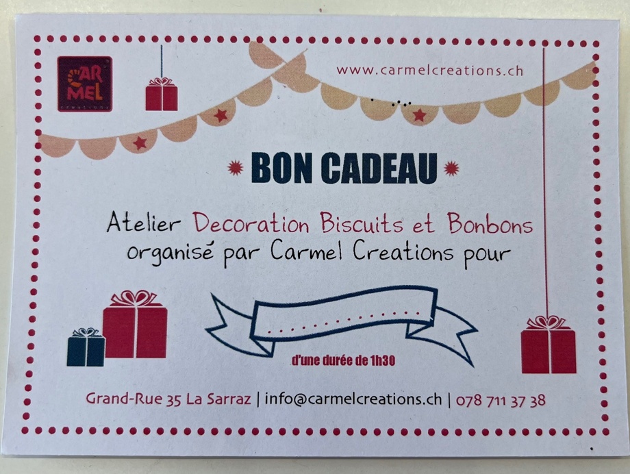 Bon cadeau d'une valeur de 38.- pour un atelier "décoration de biscuits" de Carmel Créations