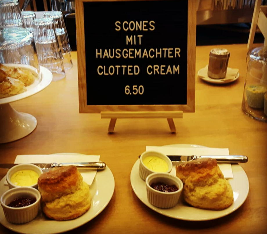 Geniesse hausgemachte, authentische Scones mit einer dampfenden Tasse Schwarztee.