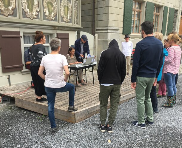 Du begibst dich vor Aufführungsbeginn auf den Landsgemeindeplatz und tauchst anschliessend in den Theaterabend ein.