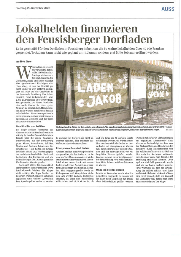 Lokalhelden finanzieren den Feusisberger Dorfladen