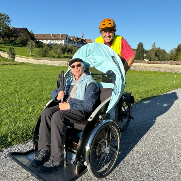 Liebe Freundinnen und Freunde Liebe Bekannte Seit letztem Sommer fahre ich für die ganz neue Organisation "zeme unterwegs", ein Verein von pensionierten Frauen und Männern, mit einer e-bike-Rikscha Betagte und Demenzbetroffene auf dem Platz St. Gallen an schöne Ort unserer Stadt. Alle haben Freude daran, die Fahrgäste, wir als Pilot:innen der Rikscha als auch die Verantwortlichen der Alters- und Pflegeheime, sowie die Institution für Demenzbetroffene. Der Bedarf nach unserer ehrenamtlichen Dienstleistung steigt und steigt. Wir möchten eine 3. Rikscha kaufen. Die Geldsammelphase ist auf den kommenden Monat April (1.-30. April 25) geplant. Du kannst uns gerne jetzt schon unterstützen, in dem du auf dem untenstehenden Link unsere Seite auf Lokalhelden der Raiffeisenbank anklickst und den "Button Fan werden" anklickst. Je mehr Fans wir haben, desto grösser wird unsere Chance in der Finanzierungsphase vom April das notwendige Geld von 12'500 Fr. für den Kauf der 3. Rikscha sammeln zu können. Im April kannst du dann auch deine social media Kanäle bespielen, um Werbung fürs Geldsammeln für unser Projekt zu machen. Jetzt genügt es, im kleineren Kreis Fans zu sammeln. Es wäre super, wenn wir im Moment sicher 50 Fans gewinnen könnten. Hilfst du mit? Herzlichen Dank und liebe Grüsse Andreas Hobi