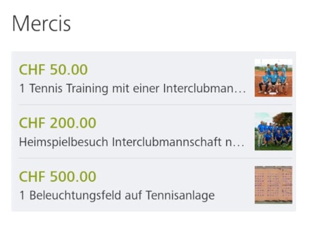 Wusstest Du, dass beim Crowdfunding Projekt Tennis spielen und Energie sparen "Mercis" verteilt werden? Dies ist ein weiterer Grund das Projekt zu unterstützen, let's go.