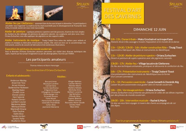 Grâce à vous, aux artistes et aux personnes qui travaillent intensément à cet évènement unique et inédit, le programme du festival d'art des cavernes est maintenant complet et officiel! Vous pouvez le consulter sous : https://forum.spelaion.ch/evenements-2/cave-art-festival/