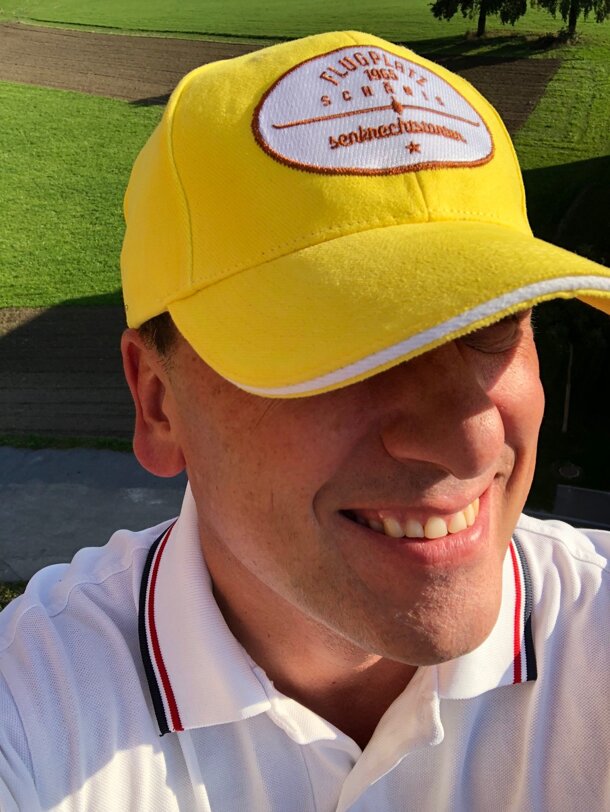 Warum sind die Caps gelb? Die Anforderungen kommen aus dem Segelflug: Eine helle Farbe kann wenig Wärme absorbieren. Am Boden und im Cockpit kann es sehr heiss werden und da ist man um ein helles Cap froh. Zusätzlich sollte es eine Farbe sein, die Dich beim Flugbetrieb auf dem Platz und auch bei einer Aussenlandung rasch sichtbar macht. Darum Gelb.