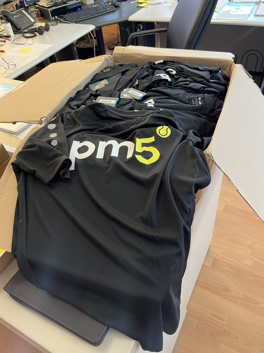 Zum Eröffnungsdrink, eine Stunde Padel auf den Courts bekommst Du ein pm5-Shirt in Deiner Grösse. Diese sind nicht käuflich und in limitierter Anzahl vorhanden.