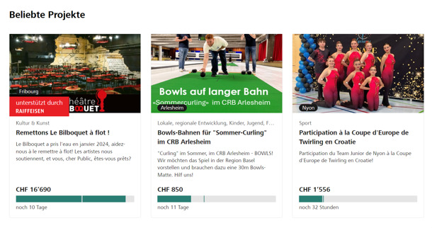 Am 19. Juni, 10 Tage vor Schluss der Aktion, haben wir schon Zusagen für 800 Franken erhalten. Vielen Dank an die Spender. Wenn jetzt noch jemand die Option "Bowls-Turnier für bis 12 Personen" für 500 Franken anwählt, sind wir durch. Wer von unseren Fans findet noch Spender? Schreibt E-Mails oder postet den Link auf eueren Social-Media Konten. Danke.