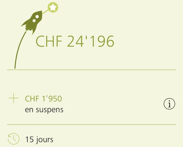 Ca y est, nous avons atteint le seuil de financement fixé à 20'000.-. La somme récoltée à ce jour est de 24'196.- Nous sommes maintenant certains de bénéficier du montant collecté. Nous allons donc pouvoir démarrer les travaux par l'isolation thermique du plafond et vous pourrez profiter de vos contreparties! Quelles bonnes nouvelles pour nous tous! En route maintenant pour atteindre notre objectif final, fixé à 36'000.-. Pour cela il nous reste 15 jours pour y arriver! Nous remercions sincèrement nos parrains et marraines qui nous suivent dans ce projet et nous font confiance!