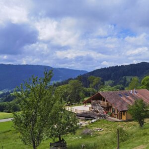 Nous avons commencé à construire la Maison de Paille il y a 15 ans avec l'objectif de participer à la transition écologique, environnementale et humaine. Construite à partir de bio-matériaux locaux (bois, terre et paille) du Parc naturel régional du Clos-du-Doubs, la Maison de Paille se situe dans le Jura suisse à 750m d'altitude au cœur du hameau d'Essertfallon ; elle fait partie des projets de développement durable et d'agriculture biologique de la Fondation des fermes communautaires libres du Clos-du-Doubs (10 ha).