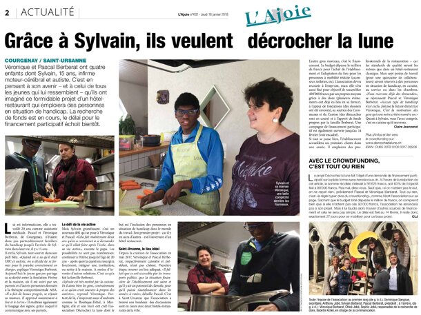 Un magnifique article cette semaine de la part du journal L’Ajoie, un article qui boostera notre crowdfunding pour les 26 derniers jours, c'est le temps qu'il nous reste pour atteindre notre objectif ! Vous pouvez le lire sur notre site Internet ! Au moment où nous écrivons ces quelques lignes, nous somme à 71% de fonds récoltés, merci pour votre soutien ! Nous croyons en nos rêves et sommes persuadés que nous allons atteindre notre objectif et ceci grâce à vous. Mais pour cela, nous avons besoin de votre soutien, de vos dons et le partage de nos publications. Ensemble on est plus forts ! Ensemble, c'est qui ? C'est vous, vos amis, votre famille, c'est nous, nos amis, notre famille, c'est eux, c'est elles... Soyons ensemble pour soutenir le handicap dans le Jura. Pour nous aider, rien de plus simple : faites un don sur notre crowdfunding et partagez cette publication. Merci d’avance !