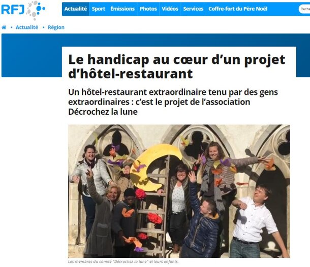 Reportage La Matinale sur RFJ Venez écouter comment apprendre à décrocher la lune ! Lien sur La Matinale - Viens chez Véronique Berberat Le handicap au cœur d’un projet d’hôtel-restaurant Un hôtel-restaurant extraordinaire tenu par des gens extraordinaires : c’est le projet de l’association Décrochez la lune ! Article et lien RFJ Article Le Quotidien Jurassien