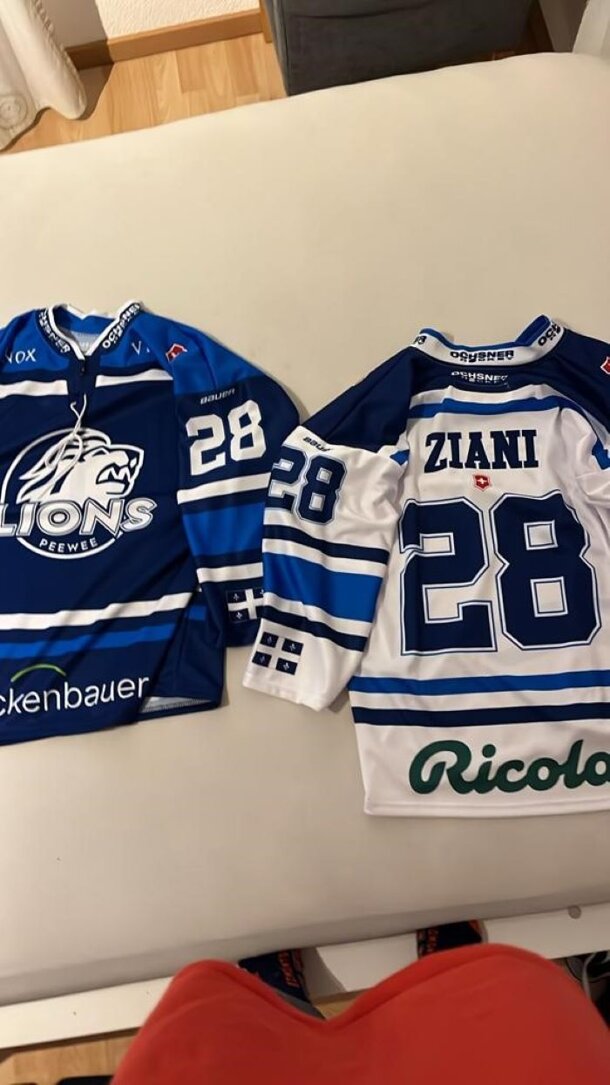 Liebe Freunde, Fans und Unterstützer Dank eurer Unterstützung konnte ich mein Projekt am 24. Dezember 2023 erfolgreich abschliessen. Dafür bedanke ich mich recht herzlich. Die Vorbereitung auf unser Abenteuer in Kanada läuft auch auf volle Touren. Vergangene Woche wurden wir mit unserer Teambekleidung ausgerüstet und haben zum ersten Mal unsere personalisierten Trikots für Kanada gesehen. Die Trikots sind wunderschön und wir werden diese mit Stolz in Québec tragen. Morgen 28.12 haben wir ein Training mit dem PeeWee Kader und am 29.12 findet ein Turnier gegen andere Teams welche nach Kanada reisen statt. Wir freuen uns sehr auf den ersten Einsatz als Team Zurich Lions. Ich wünsche euch allen einen super Rutsch ins 2024 und melde mich bald wieder bei euch. Liebe Grüsse Diego #28