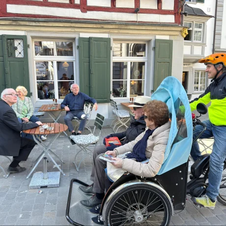 Um die Gestaltung der Freizeit und einen Tapetenwechsel für Betagte und Demenzbetroffene durch das Erleben von Glücksgefühlen auf den Rikschafahrten. Sie hinauszuführen über die Weihern, durch die Gassen der Altstadt und quer durch lauschige Quartiere.