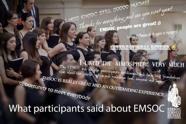 Für diesen grosszügigen Betrag erhältst ein offizielles EMSOC Gönner T-Shirt, signiert vom Dirigenten, dem Chorleiter, einem Organisator und dem Komponisten des Eröffnungsstückes (!) geschenkt!