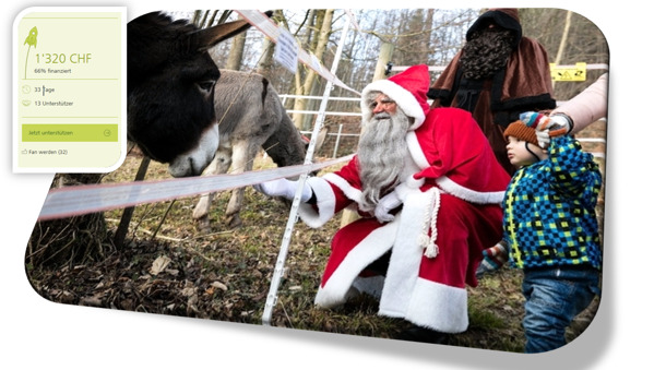 Vor zwei Wochen wurde unserer Crowdfunding Projekt bereits von einigen Medien entdeckt. Zwischenzeitlich sind wir in die Sammelphase gestartet, und man kann uns über das Crowdfunding Projekt auf Lokalheld.ch/Eselstall unterstützen. Samichlaus und Schmutzli mit ihren Eseln würden sich freuen, wenn Sie dieses Vorhaben finanziell unterstützten, sodass uns weiterhin Kinder am Stadtrand von Winterthur kostenlos besuchen können. Unterstützen sie uns finanziell und erzählen Sie es weiter! Wir würden uns sehr freuen, wenn Sie uns vom 2. bis 6. Dezember im Chlaus-Hüsli persönlich besuchen kämen, ums sich das Projekt persönlich vor Ort anzuschauen. Chlausische Grüsse Euer Claushelferteam