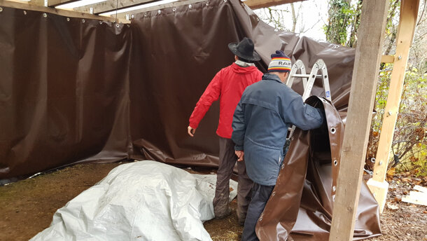 Wir haben nun bereits 72% des Zielbetrags erreicht - eure fleissige Unterstützung freut uns riesig! Pünktlich auf den Einzug der Esel konnten wir bereits die Wandblache, welche dank eurer Hilfe finanziert wurde, beschaffen und montieren ( Dankes-Video CHF 2'000 ). Samichlaus und Schmutzli konnten vom 2. bis 6. Dezember wieder zahlreiche kleine und grosse Gäste im Chlaus-Hüsli empfangen. Dass auch die Esel anwesend waren begeisterte zusätzlich. Stürmische Nächte Als es jetzt so stürmte, hatten der Samichlaus und sein Schmutzli einige unruhige Nächte, denn sie waren sich nicht sicher ob die aktuelle Dachblache den stürmischen Winden standhält und keine Esel verletzt werden. Doch plötzlich erinnerten sie sich, dass die Esel ja bereits wieder in ihrem sicheren Zuhause sind und die Helfer der Chlausgesellschaft den Eselstall ja bereits letzte Woche in stundenlanger Arbeit abgebaut haben. Hilf mit, dass die Esel zukünftig einen sicheren Platz beim Chlaus-Hüsli haben und die Helfer rascher beim Auf- und Abbau sind um so mehr Zeit für ihre Familien zu haben. Erzähl von unserem Projekt oder unterstütze uns, auch wenn es nur ein kleiner Betrag ist. Gemeinsam werden wir das Ziel erreichen! Ich danke euch schon jetzt für all eure Unterstützung! Andreas Häusler Präsident