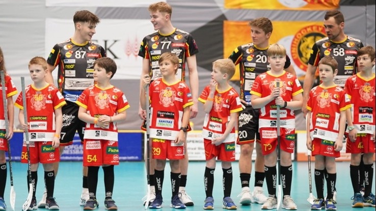 Die komplette Unihockey Tigers Langnau Familie inkl. der Hallenbesitzer.