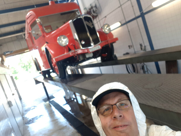Es geht weiter in unserem Projekt "Sanierung Saurer LC2 1953 "Witterswilli". Am letzten Freitag war Grosswaschtag angesagt. Zu Zweit schnappten wir den Hochdruckreiniger, stellten unser Schuckstück auf die grosse Hebebühne unseres Garagenpartners "Schumacher AG Laufen" und dann ging es relativ schnell und wir waren von unten bis oben "eingesaut". Das komplette Chassis wurde gereinigt, entfettet und dann anschliessend wieder alle Schmierstellen nach Schmierplan gefettet. Im Anschluss war unser Oldie für 3 Tage beim Motorenservice angemeldet. Es wurden folgende Arbeiten erledigt: Motorölwechsel Getriebekontrolle Ventile einstellen Filter reinigen resp. ersetzen Blattfedern schmieren und sonstige Kleinarbeiten an Motor und Chassis Am Donnerstag konnten wir dann unseren "Roten Blitz" wieder nach Witterswil überführen und wir konnten definitiv feststellen das alles wieder "rund läuft". Bald steht der nächste Schritt bevor. Die Vergabe der Lackierarbeiten Aber davor gibt es heute für unsere Donatoren den obligaten jährlichen "Apéroabend".