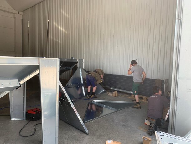 Alle Bewilligungen sind durch und wir konnten endlich anfangen, die Getreidesilos aufzubauen. Die Arbeit konnte hauptsächlich durch die Vereinsmitglieder, also Getreidebauern gemacht werden. Damit ist der Start in die Bauphase gut gelungen. Nachher muss noch eine Pannell-Wand angebracht und die Getreidetrocknung installiert werden. Auch die elektrischen- und Umgebungsarbeiten müssen natürlich noch gemacht werden, bevor Ende August/ Anfang September dann das erste Getreide angenommen werden kann.