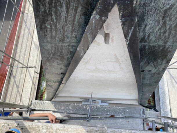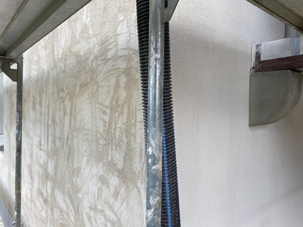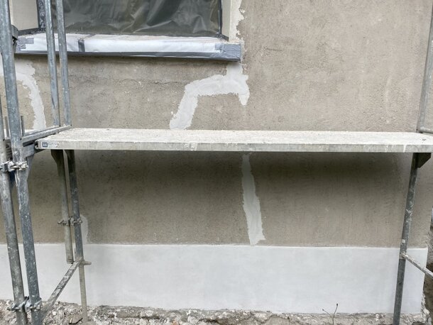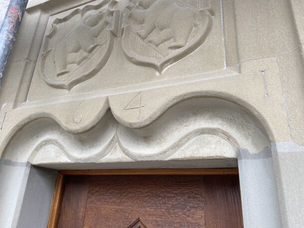 Nun zum Baufortschritt: Nach dem entfernen des Putzes sind die Arbeiten über die Sommerferien weit fortgeschritten. Der alte Putz ist entfernt, die Risse sind ausgebessert, die Fenstereinfassungen sind gemacht und die Sandsteinarbeiten sind ausgeführt. An einigen Stellen ist der Putz als erste Schicht aufgetragen und teilweise schon der Deckschicht. So können wir die ersten Fortschritte auch in Bildern festhalten.