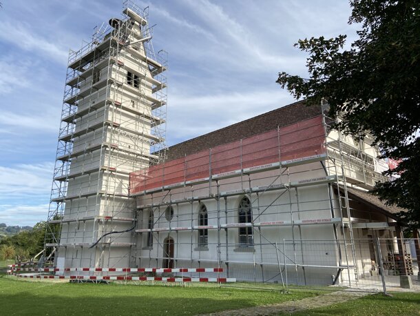 Der Turm und die Kirche, die unter Denkmalschutz stehen, müssen dringend saniert werden. Die Aussenfassaden sind von Schimmel, die Zifferblätter von Rost befallen und die Sandsteingewände bedürfen stabilisierenden Unterhalts. Die Elektroinstallationen müssen sicherheitstechnisch auf den aktuellen Stand gebracht werden.