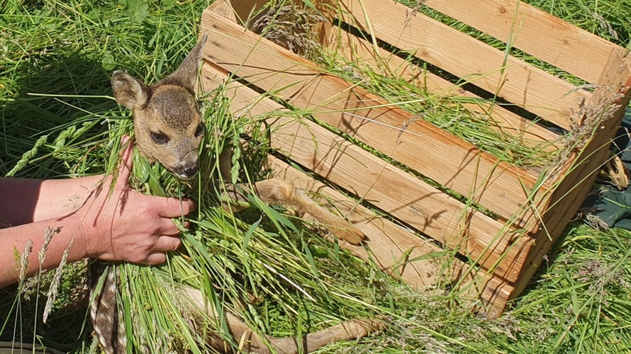 Rehkitze und andere Jungtiere vor dem Tod durch die Mähmaschine