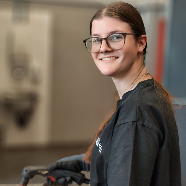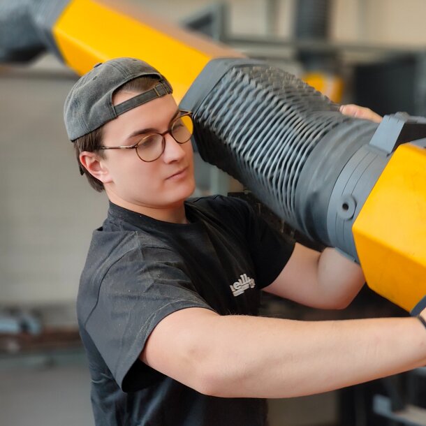 Svenja hat mit dem Plasmaschneider die filigranen Blätter des Krauts geschnitten, jene charakteristischen Formen, die jedes echte Rüebli oben am Kopf trägt.