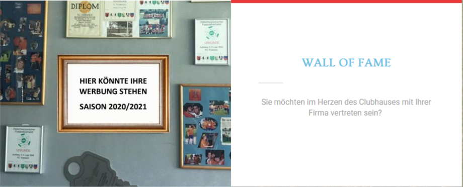 Platzieren Sie Ihre Werbung (Firmenlogo) bei uns auf der FC Trübbach "Wall of Fame" (im Club-Haus) für drei Saisons