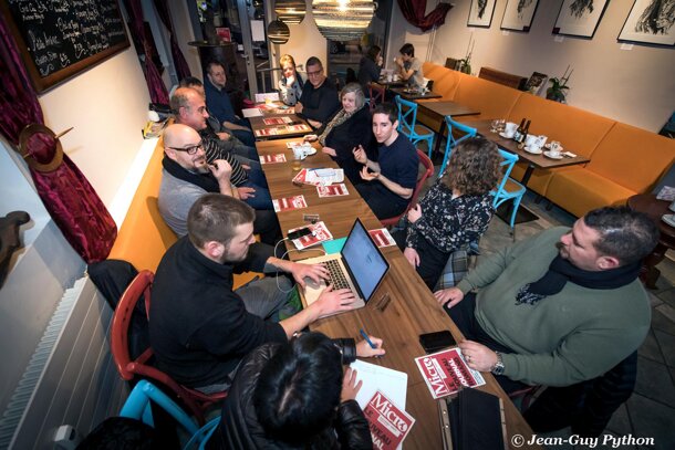 Chers soutiens, Tout d'abord, un immense merci de votre confiance, moins de deux semaines après son lancement, notre financement participatif vient de franchir la barre des 75 000 francs! Toute l'équipe croise les doigts pour que, grâce à vous, Micro puisse voir le jour au printemps prochain. La deuxième semaine de l'aventure Micro a été bien remplie. Mercredi soir, nous avons organisé notre toute première séance de rédaction ouverte au public. Une quinzaine de personnes se sont déplacées au café Balzac à Morges pour donner leur avis sur notre première édition (photos ci-dessous). De notre côté, nous avons continué à distribuer notre numéro 0 à travers toute la Suisse romande, de Bienne (BE) à Martigny (VS) en passant par Bulle (FR) et Vernier (GE). Sur notre site Web, vous pouvez retrouver une carte indiquant tous les cafés-restaurants où il est disponible. Vous pouvez également suivre les aventures de Micro au jour le jour sur les réseaux sociaux, sur Facebook , Twitter et Instagram . La naissance d'un nouveau journal romand, indépendant et participatif, est désormais à bout touchant. Nous comptons donc sur vous pour nous aider à faire connaître Micro le plus largement possible. Encore une fois, un grand merci de votre soutien et une excellente semaine, Toute l'équipe Micro.