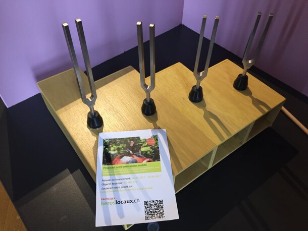 Merci à vous, nous sommes au diapason, le seuil de financement minimal pour recevoir les dons est atteint! Notre projet de scène mobile, théâtre itinérant va devenir réalité, grâce à vous! Nous avons encore besoin de soutien pour réussir l’objectif final de CHF 15’000.— qui se profile à l’horizon! Attention nous avons jusqu’au 30 septembre (les montants versés par certaines banques mettent parfois plusieurs jours avant d’être comptabilisés. Partagez, versez à nouveau si vous le souhaitez, svp avant le 25 septembre 2021). Encore un grand merci pour votre générosité ! Coralie et Carole-lyne