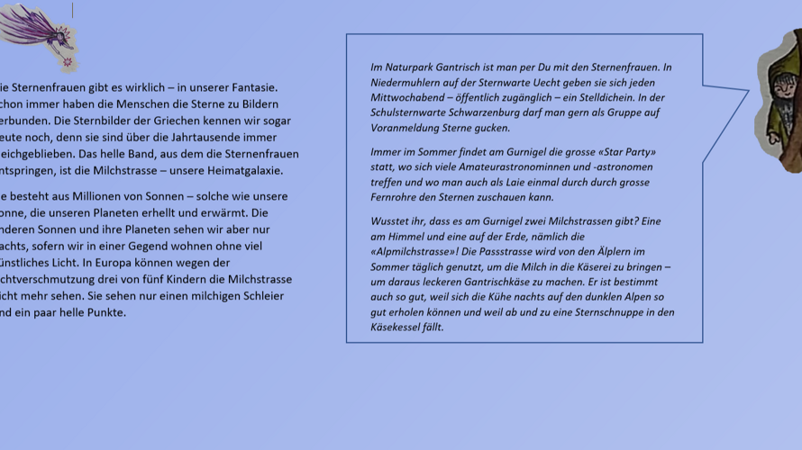 Vor rund einem Jahr haben wir im Naturpark eine Nacht-Sage bei unserem Sagenwanderer Andreas Sommer in Auftrag gegeben und waren gespannt, ob und was sich daraus für ein Buch ergäbe. Seither wurde gemalt und geschrieben, korrigiert und konzipiert, ausgetauscht und kommunziert - und am Schluss noch einmal alles in französischer Sprache wiederholt. Dies alles war viel Arbeit, und einige Kosten konnten wir nur dank dem Crowdfunding decken, bei dem SIE, liebe Spender*innen, mitgeholfen haben. Dafür möchte ich Ihnen im Namen des Naturparks Gantrisch sowie der Autorenschaft ganz herzlich danken! Nun dauert es nur noch wenige Tage, bis das fertige Buch bei uns auf die Geschäftsstelle geliefert wird. Wir freuen uns sehr! Es kommt nun etwas später heraus als geplant, dafür konnten Druck und Lieferung der deutschen und französischen Version gleich zusammengelegt werden, sodass die französische Version sogar etwas früher herauskommt. Natürlich können wir das Buch nun nicht in einer Vernissage vor Ort begiessen. Aber wir machen den Versuch, dies online zu tun und laden euch sehr gerne dazu ein, bei unserer Online-Vernissage am 17.11. um 19 Uhr vom heimischen Wohnzimmer dabei zu sein - in einer Art Live-Konferenz mit uns, den Autoren und vielen anderen. Ob im Abendkleid oder im Pijama spielt dabei für einmal keine Rolle. Ein Mikrophon und Kamera sind von Vorteil, aber nicht zwingend nötig. Gerne senden wir Euch den Einladungslink via info@gantrisch.ch. Man kann den Link auch auf unserer Webseite ordnern - bei einer Anmeldung bis 10.11.2020 senden wir Euch sogar eine kleine Überraschung für die Vernissage per Post: https://www.sternenpark-gantrisch.ch/vernissage-helva/ Wie gesagt, die Bücher treffen nächstens bei uns ein, und ab 18.11. machen wir uns daran, diese an Euch zu verschicken, inkl. den Widmungen und Zusatzmercis. Vielen Dank nochmals für Eure Unterstützung. Und häbet Sorg - zu Euch, zu Eurer Gesundheit und natürlich zur zauberhaft dunklen Nacht. Mit herzlichen Grüssen aus dem Naturpark Gantrisch Nicole