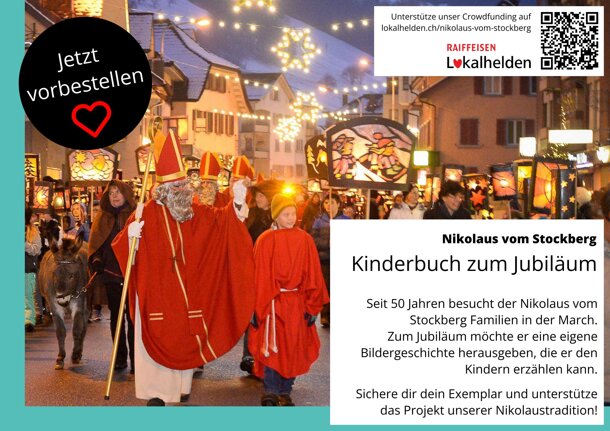 Liebe Unterstützer des Nikolaus vom Stockberg Wir konnten das Crowdfunding rechtzeitig zur Nikolaus-Saison 2024 starten und freuen uns über jede Art von Werbung, die ihr für unser Projekt machen werdet. Dazu könnt ihr alle möglichen Kanäle, sei dies Whatsapp, Facebook, Instagram, Tiktok oder auch persönliche Kontakte nutzen. Angehängt findet ihr einen Flyer, den ihr gerne dazu nutzen könnt. Wir freuen uns bereits jetzt darauf, das Projekt mit unserer Illustratorin in die Wege zu leiten und sind gespannt auf das Resultat zu unserem 50-Jahr-Jubliläum im 2025. Wir wünschen Euch allen eine schöne Nikolaus-Zeit mit vielen wunderbaren Begegnungen. Euer Nikolaus vom Stockberg