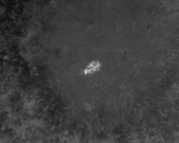 Wir haben erwachsene Rehe, Katzen, Mäuse und einmal sogar eine Petflasche gefüllt mit heissem Wasser gefunden (die Geschichte dazu haben wir euch im letzten Bericht erzählt). Zweimal haben wir ein Rehkitz in benachbarten Ökowiesen gefunden, mussten sie aber nicht entfernen, da die Ökoweisen erst ab Mitte Juni gemäht werden durften. Und da waren die Kitze bereits flügge. Von einem dieser Kitze haben wir euch ein Bild angehängt. Einmal Originalbild und darunter das Wärmebild.