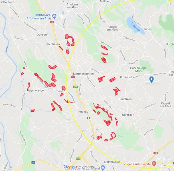 - für Knonau: 28 Flugfelder mit total 60 ha Fläche (85 Fussballfelder)