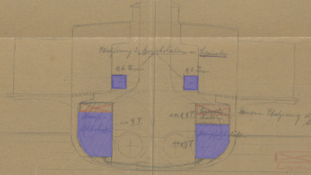 Sobald die Stabilitätskriterien mit den neuen Tanks erfüllt waren, beauftragte man die Zürcher Firma Lipinski & Co damit, detaillierte Zeichnungen der Tanks anzufertigen. Durch geschickte Gestaltung konnte die Einbauhöhe des Tagestanks so angepasst werden, dass er immer noch in den Maschinenraum passte. Diese Tanks wurden im stärksten Teil des Schiffes platziert, da zahlreiche Verstärkungen der Längs- und Querverbände diesen Abschnitt des Schiffes äusserst robust machten.