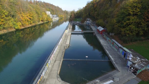- Der momentan im Winter wenig frequentierte Standort Lorrainebad bietet einen ruhigen und in die Natur eingebetteten Rückzugsort inmitten der Stadt Bern