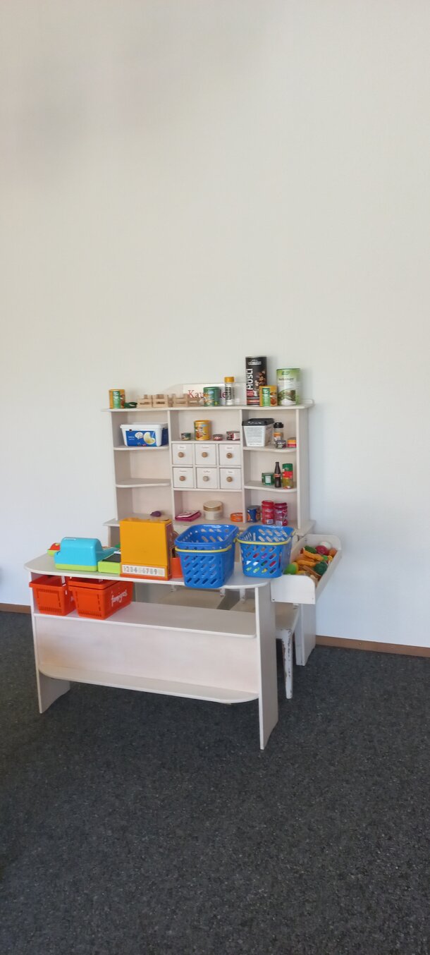 Beim Spielmaterial haben wir den klapprigen Verkaufsladen gegen einen stabileren getauscht und neue, bunte Kissen für unseren Morgenkreis angeschafft.