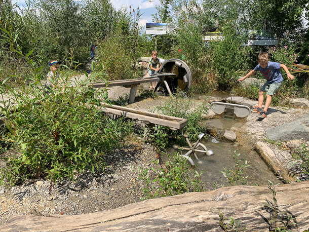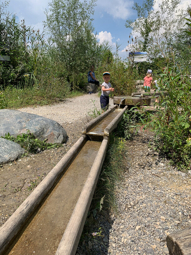 Damit man sich eine etwas konkretere Vorstellungen von dem geplanten Wasserspielplatz machen kann, zeigen wir gerne als ein wunderbares Beispiel den Wasserspielplatz vom Papiliorama in Kerzers.