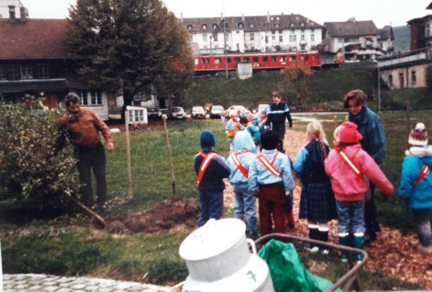 Zum 100-jährigen Jubiläum des Gemeinnützigen Frauenvereines wurde 1988 der Spielplatz mit dem Steintisch und den Bänken sowie den schattenspendenden Bäumen aufgewertet. Drei Kindergartenklassen halfen beim Setzen der Bäume mit. Erinnert sich jemand?