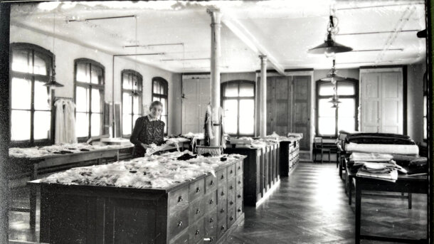 Wir bauen eine Gastroküche ein und gestalten einen einladenden Eingangsbereich. Ein Magazin und eine Vorratskammer sorgen für die nötigen Lagerflächen und wir verbessern die Akkustik. Der Boden und die Wände werden sanft aufgefrischt, der Geist der Stickereigeschichte bleibt erhalten.