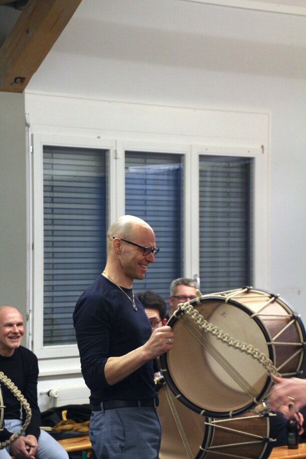 Im Frühling war es endlich soweit: Am 15. März 2023 war der grosse Tag gekommen. Stefan Freiermuth von Schlebach Trommelbau fuhr mit seinem Lieferwagen von Basel nach Gossau, um uns unsere lang ersehnten Schätze zu übergeben. Der Wagen war bis oben hin vollgeladen mit 27 brandneuen Holztrommeln. Jedes Vereinsmitglied bekam eine strahlend neue Holztrommel überreicht und man konnte förmlich die Augen glänzen sehen. Es war wie Weihnachten und Geburtstag zusammen. Allen voran für Marcel :)