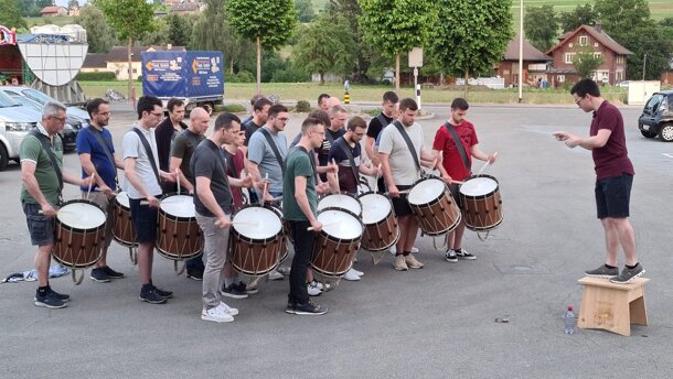 Am 1. Juli 2023 kam der große Tag - das Sektionswettspiel! Wir haben in der höchsten Kategorie S1 einen Marsch und zwei Kompositionen vor der Jury zum Besten gegeben. Die Anspannung war auf einem Höchststand. Aber wir konnten unsere Leistung abrufen und haben es souverän durchgezogen! Am Abend mussten wir dann in der Kategorie Trommel & Perkussion nochmals antreten, um den Schweizermeistertitel zu verteidigen. Mit der Komposition „Base Jump“ haben wir den Saal zum Beben, und das Publikum zum Toben gebracht. Auch die Jury war sichtlich begeistert. Wir haben uns gefühlt wie Superhelden, die gerade die Welt gerettet haben.