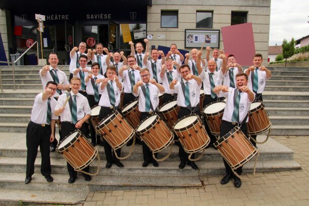 Danach ging es richtig zur Sache. Wir haben wie die Verrückten gearbeitet und uns auf das eidgenössische Tambouren- und Pfeiferfest in Savièse vorbereitet. Etienne Naef, unser musikalischer Leiter, hat uns mit viel Geduld und Hingabe geprobt. Er hat wirklich Nerven aus Stahl, um mit uns Chaoten klarzukommen. Das Stimmen der Instrumente war für uns Neuland - wir haben uns gefühlt wie Neanderthaler, die versuchen, eine Rakete zu bauen. Aber dank Joel Dörig, unserem Materialwart, der die Instrumente auf Vordermann gebracht hat, haben wir es geschafft. Er hat geschwitzt wie ein Dampfkessel, um den perfekten Klang hinzubekommen. Ein echter Held!